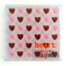 Super Strong Mini Hearts Magnet 36-Piece SetProduct Description: Very strong, very cool looking mini magnets.Each of the 36 pieces measures 0.5" x 0.5" high and features the ultra strong Neodymium magnet.