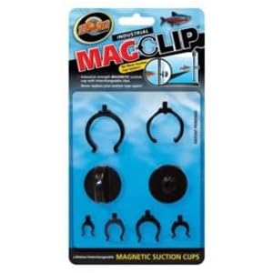 Industrial strength magnetic suction cup with interchangeable clips. Never replace your suction cups again.Includes 6 assorted sizes of nylon clips to hold all types of aquarium accessories.
