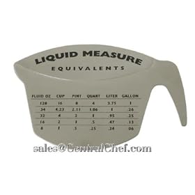 This handy fridge magnet shows liquid measure (volume) equivalents: fluid ounces, cups, pints, quarts, gallons, and litres.