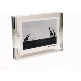 picture frames / photo frames :The original MAGNET FRAME by Canetti DesignLuxe quality Magnet is the original made in ultra-clear virgin acrylic.Your print will appear to float in borderless space as if suspended in glassThats the power of this wonderful desk frame.Super strong pill-sized magnets securely and firmly sandwich your photo for this wonderful effect.The acrylic is 1 thick and luscious to the touch.Many of our customers enjoy this piece as a personalized paperweight or prized corporate gift idea.SendAFrame offers 1-dayLASER ENGRAVING of the MAGNET FRAME with your text or digital imagelogo.Place the item into a shopping cart and click the Personalize link.For best float effect we suggest going one size larger than your print so that the piece is inside the magnet line.Displays 2 prints - back and front.Designed by Nicolai Canetti 1994.This is the original frame available at the Museum of Modern Art gift shop in NYC and at SendAFrame.
