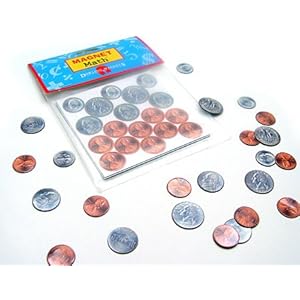 Introduce coins, their denominations, and how to make change with these magnetic coins. Coins are evenly split between both heads and tails.8 quarters 12 dimes 12 nickels 40 pennies