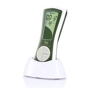 Klip's lightweight, hourglass shape carries easily and stores conveniently on the matching countertop stand. Klip's intuitive LCD features a handy elapsed time graphic. Ten vertical bars at the bottom of the display disappear with the passage of time making it easy to see time remaining at a glance. Includes belt clip, fridge magnet, detachable lanyard, and matching countertop stand.
