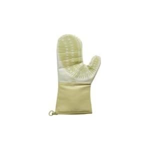 Fitting truly like a glove, this convenient oven mitt can be worn on either hand and, at 13 inches long, protects the wrist and forearm from burns. The outside is made with 600-degree F heat-safe silicone, which is flame-, stain-, and steam-resistant. A unique silicone rib design improves flexibility and dexterity, making it easy to pick up both large and small items, plus it provides a secure grip even on slippery surfaces. On the inside, a thick, cool, comfortable fabric liner brings additional thermal insulation, yet lets the hand breathe to prevent sweating. For convenient storing and easy access, the mitt can be hung from its silicone hanging loop or attached to a steel surface using its embedded magnet. To clean, just wipe the mitt off with a damp sponge or wash it in the washing machine.