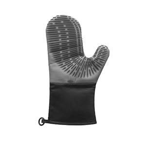 The OXO GOOD GRIPS Silicone Oven Mitt is the best of both worlds: 600°F heat resistant silicone on the outside and cool, comfortable fabric on the inside. The silicone grip is heat safe and flame, stain and steam resistant. On the inside, the thick fabric liner brings additional thermal insulation, yet lets your hand breathe to prevent sweating. OXO's unique silicone rib design improves flexibility and dexterity and provides a secure grip even on slippery surfaces. Our Mitt truly fits like a glove, letting you pick up items small and large. At 13 inches long, the Mitt is long enough to protect the wrist and forearm and fits either your right or left hand. To conveniently store and access your Mitt in the kitchen, simply use the embedded magnet to hang on steel surfaces or place the silicone hanging loop on a hook. To clean, just wipe the Mitt with a damp sponge, or wash and dry in the laundry machine.